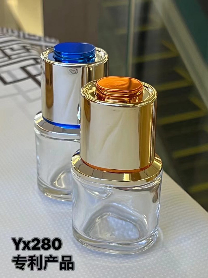 4、 精油瓶系列:玻璃瓶身内塞大头盖或胶滴头滴管电化铝盖